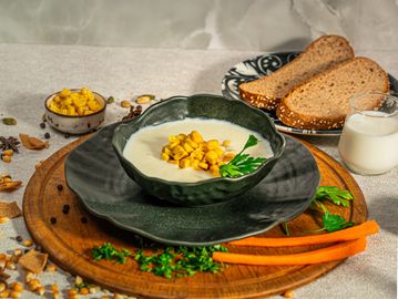 A comforting soup that combines sweet corn kernels with smooth cream for a unique flavor.