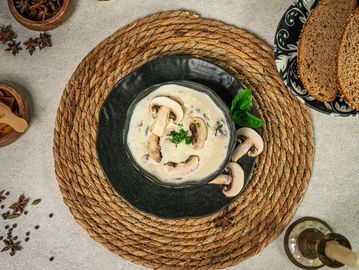 A rich and creamy soup with fresh mushrooms that offers a smooth texture and delightful flavor.